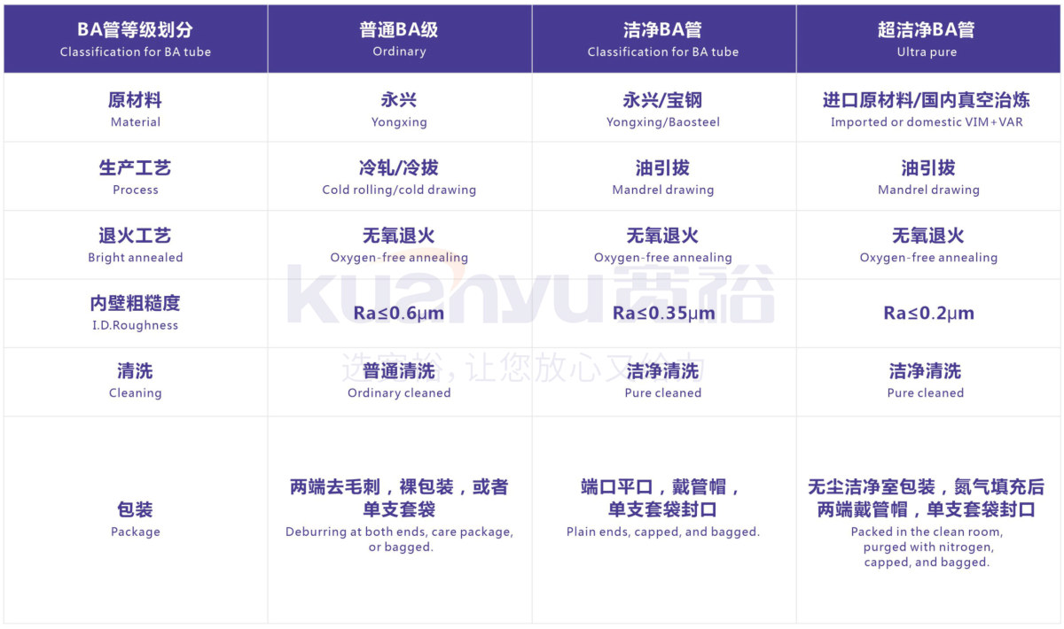 1.表面光潔度:針對鋼管的內外表面進行拋光處理,使得鋼管表面呈亮面;也就是我們常說的鏡面。主要是防止管內走的流體物質在管內形成掛壁,時間長了容易污染而且形成管內堵塞。