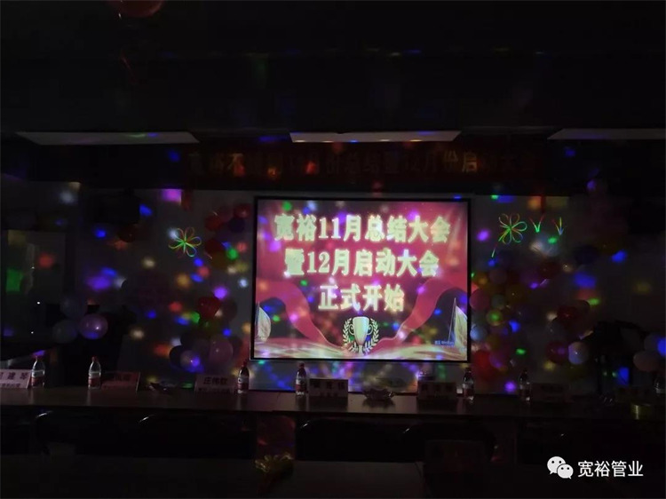 在這個美好的夜晚,我們將總結上個月的拼搏與努力,展望本月拼搏的目標。每一次的成功都是一次又一次的總結中所得,正如古人所說:“吾日三省吾身”。下面我宣布,寬裕11月總結大會暨12月啟動大會正式開始!