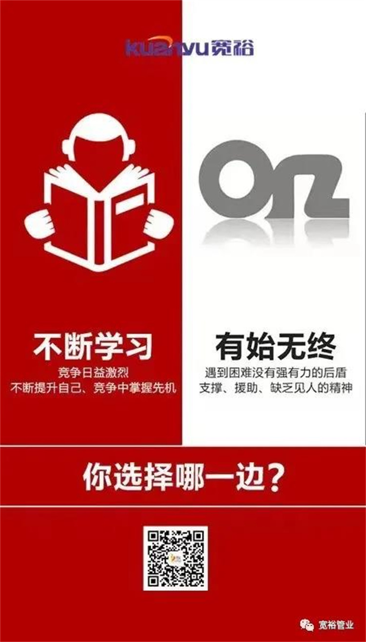 2021年,寬裕管業將正式建立寬裕商學院,致力學習型組織的建設,致力打造一支真真正正善戰、樂戰、謀戰的戰斗兵:召之即來,指哪打哪,來之能戰!戰之必勝的寬裕人,才是我們真正智勝未來的核心競爭力!